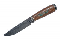 Нержавеющий булатМозаичный дамасскБулатный нож 076 "Одинокий Волк" (легированный булат), И. Пампуха, корень ореха, инкрустация, резьба