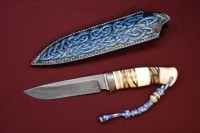 Легированный булатБулатный нож "007" (легированный булат), И. Пампуха, стабилизированная карельская береза, бусина